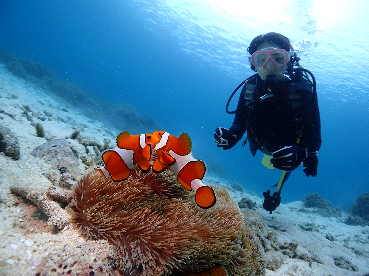 初心者の方でも普段はなかなか行くことのできない宮古島沖合の海中での本格的なダイビングを体験できるコースです。